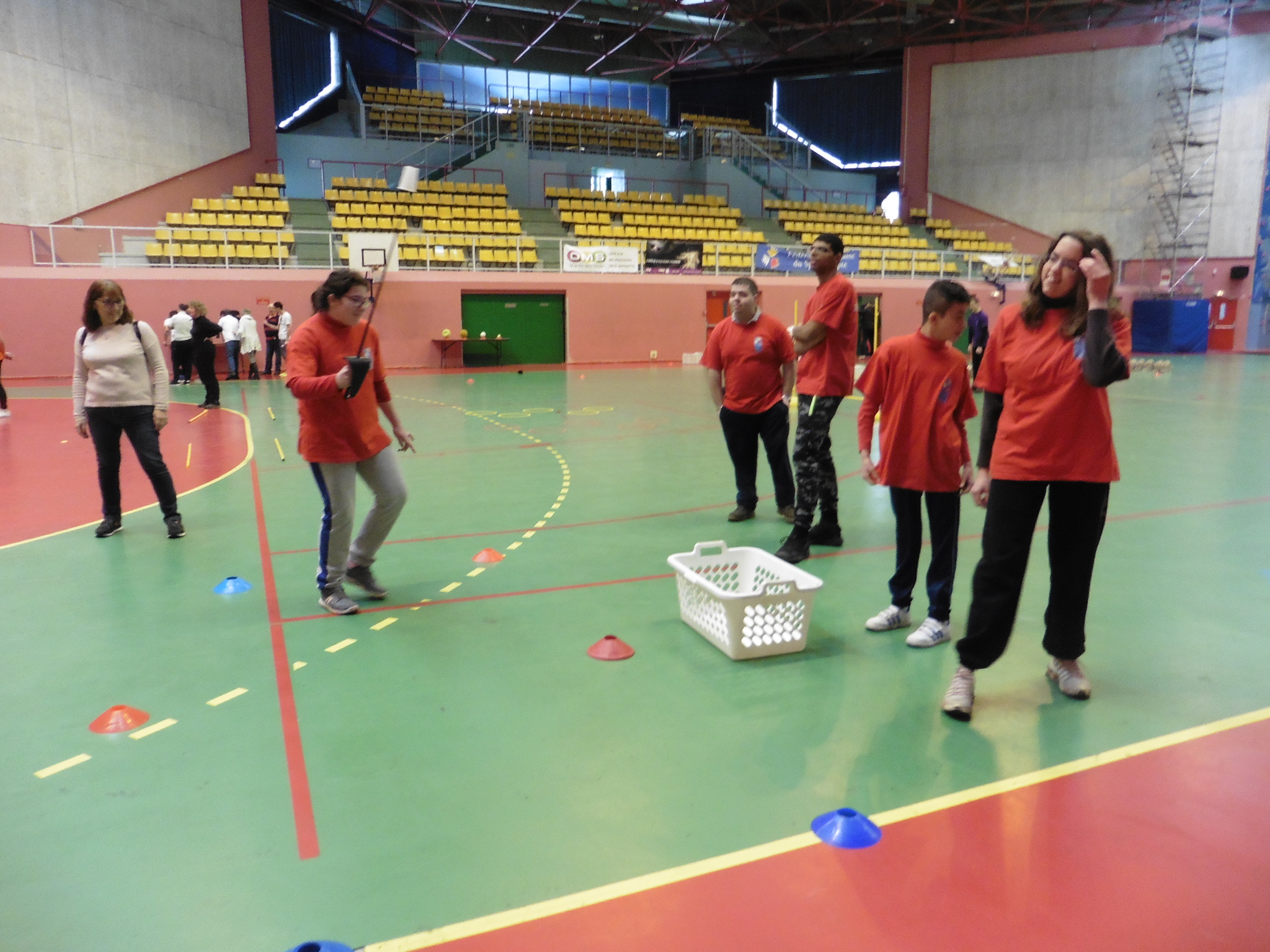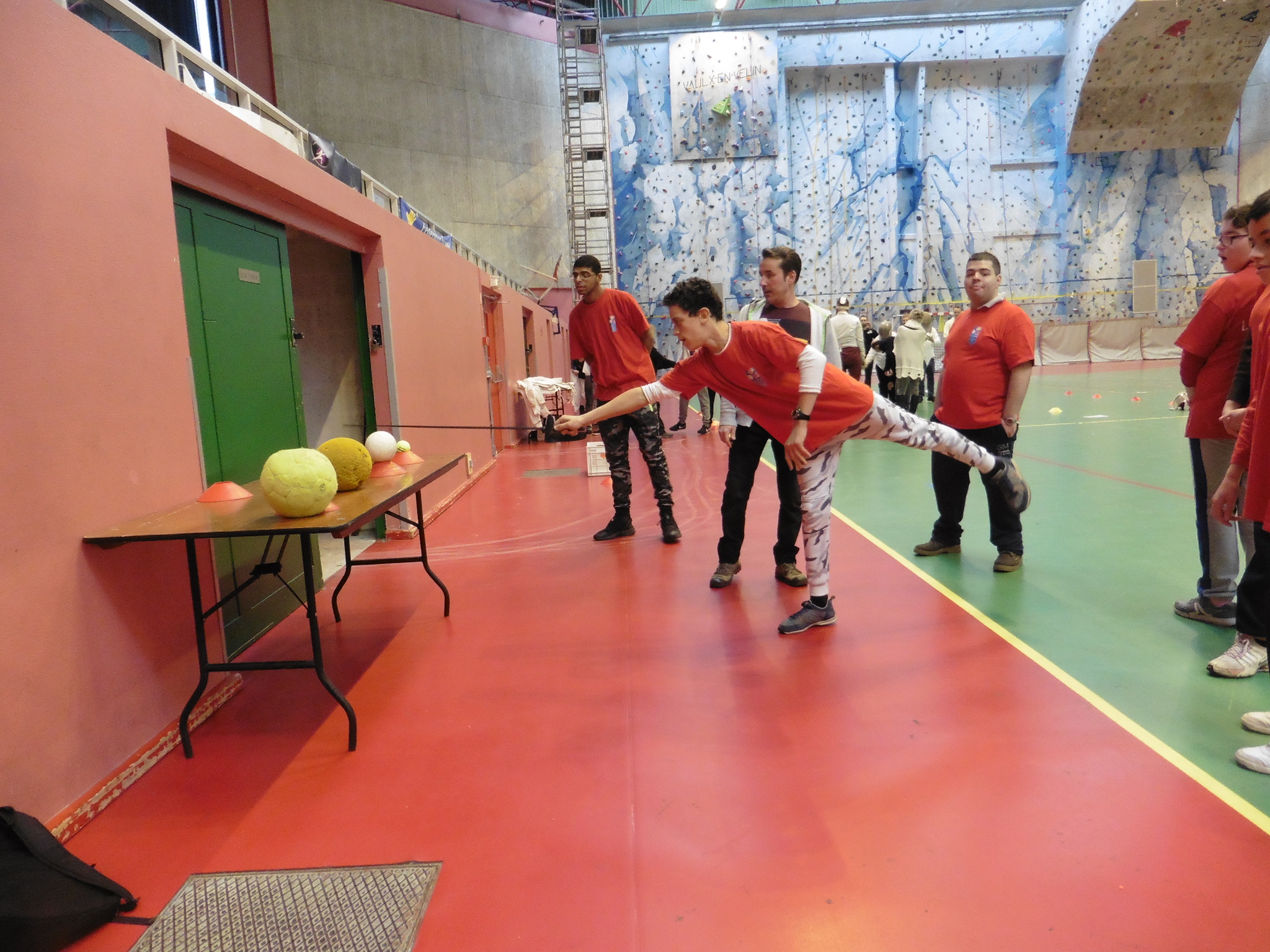 Une trentaine de personnes ont pu participer à cette journée, même si une cinquantaine était prévue mais pour cause de neige, nombre d’entre eux n’ont pu effectuer le déplacement. Des ados et adultes issus de centres d’accueil de jour de Parilly, Caluire (Les Villanelles) & Villeurbanne (Pré Vert) et d’I.M.E. comme les Primevères (Charly) & Coquelicots (Meyzieu). Sept ateliers avaient été installés pour permettre une découverte active de la discipline à des personnes porteuses de handicap mental. Un sport individuel qu’ils n’ont pas forcément l’habitude de pratiquer mais qui leur a permis de constater qu’ils pouvaient tout à fait en faire comme tout le monde !