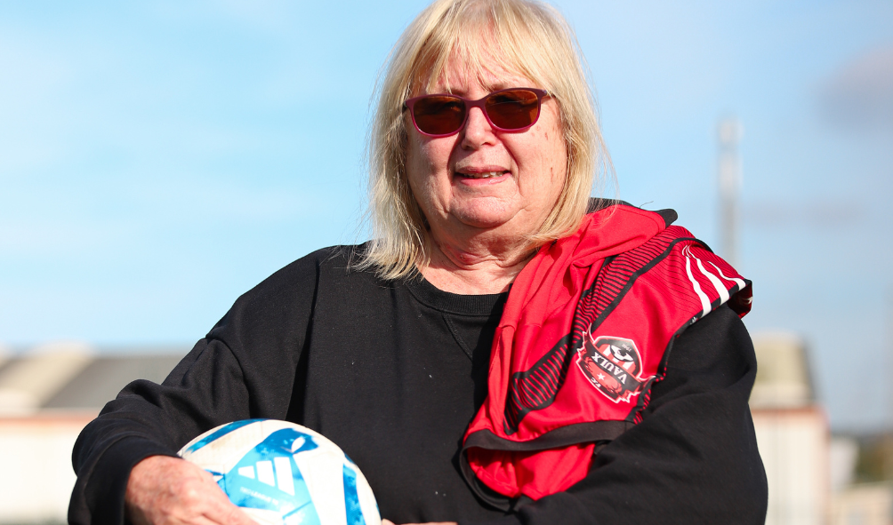 « Je m’appelle Claudine Murat, je suis bénévole au FC Vaulx-en-Velin. Mon fils a 45 ans, et il est venu au FC Vaulx quand il avait cinq ans et demi, alors faites le calcul, ça fait longtemps que je suis ici et je n’ai jamais changé de club, je suis toujours resté fidèle à mon FC Vaulx !