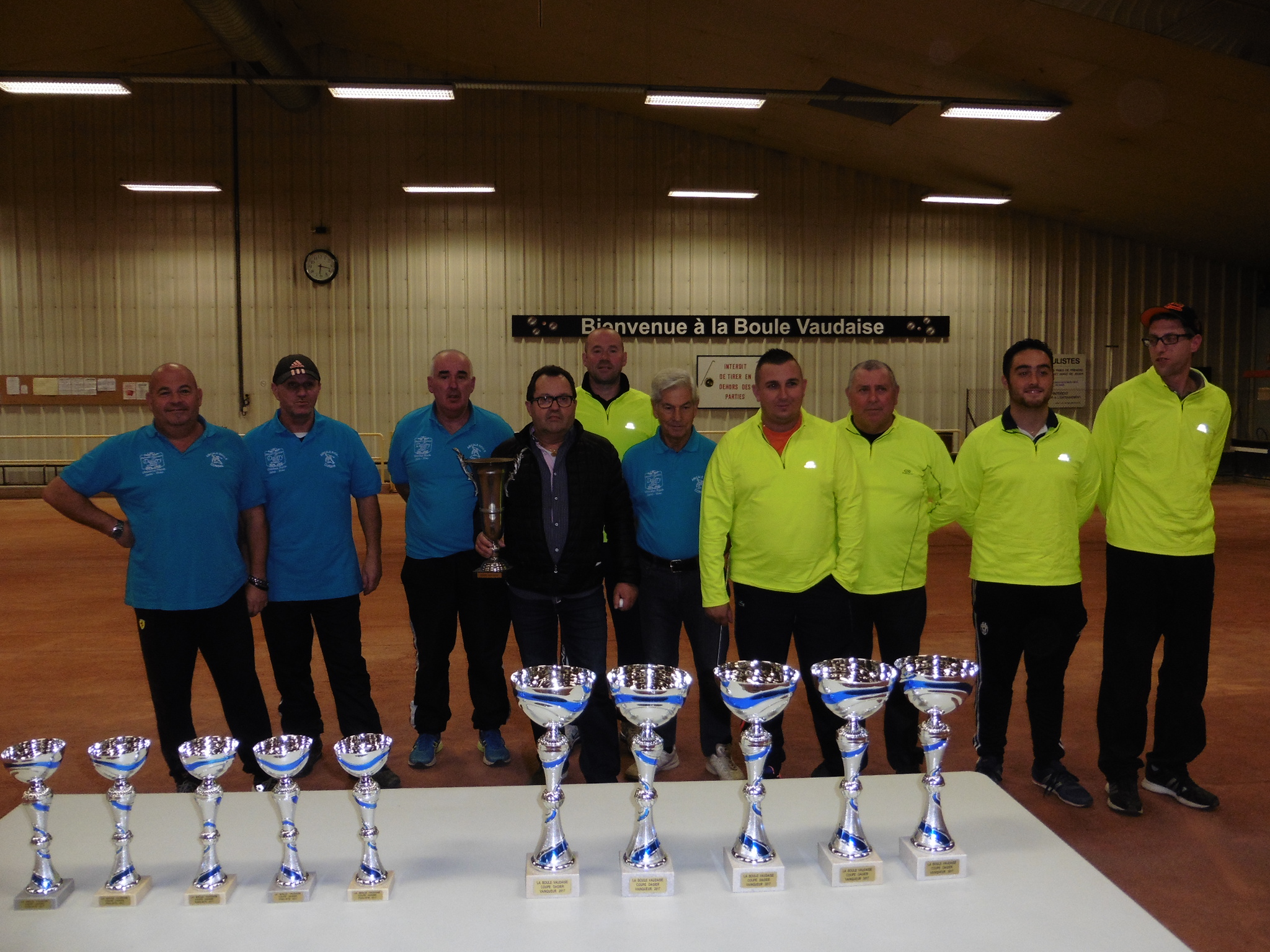 - Demi-finales : Jan/Di Jorio/Bousch G. & N./Fraisse (ALBEU) battent Gaget/Ladreyt/Gay/Dancoisne/D’Adamo (Heyrieux) 13/2 & Paturel/Bertholet/Ferretti/Dentressangle/Monnet (Corbas) battent Peyratou/perrozzi/Scapatticci F./Moron/Dunière(La Vaudaise/Albeu) 13/3.