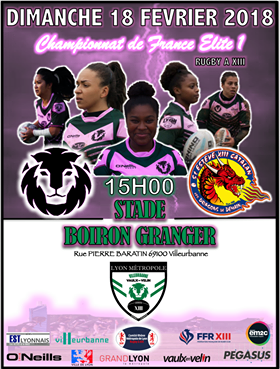NOTA : Sans oublier le choc entre les Lionnes LVR-VVRL et les Déesses du XIII Catalan du dimanche 18 février 2018 à 15 heures au stade Boiron Granger (Villeurbanne) dans le cadre du championnat Elite 1. (Affiche A LA UNE).