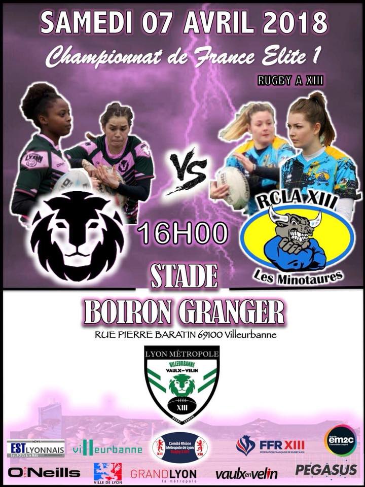 - à Villeurbanne (stade Boiron Granger): Les Lionnes de LVR/VVRL battent LESCURE XIII 50 à 6 (mi-temps 34 – 0)